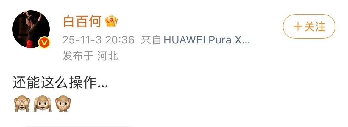发布了一条毫无前因后果的简短留言:“还能这么操作…”,并附上三个耐人寻味的表情符号——捂眼、捂耳、捂嘴,仿佛所见之事荒诞至极,连她的三观都被彻底颠覆。