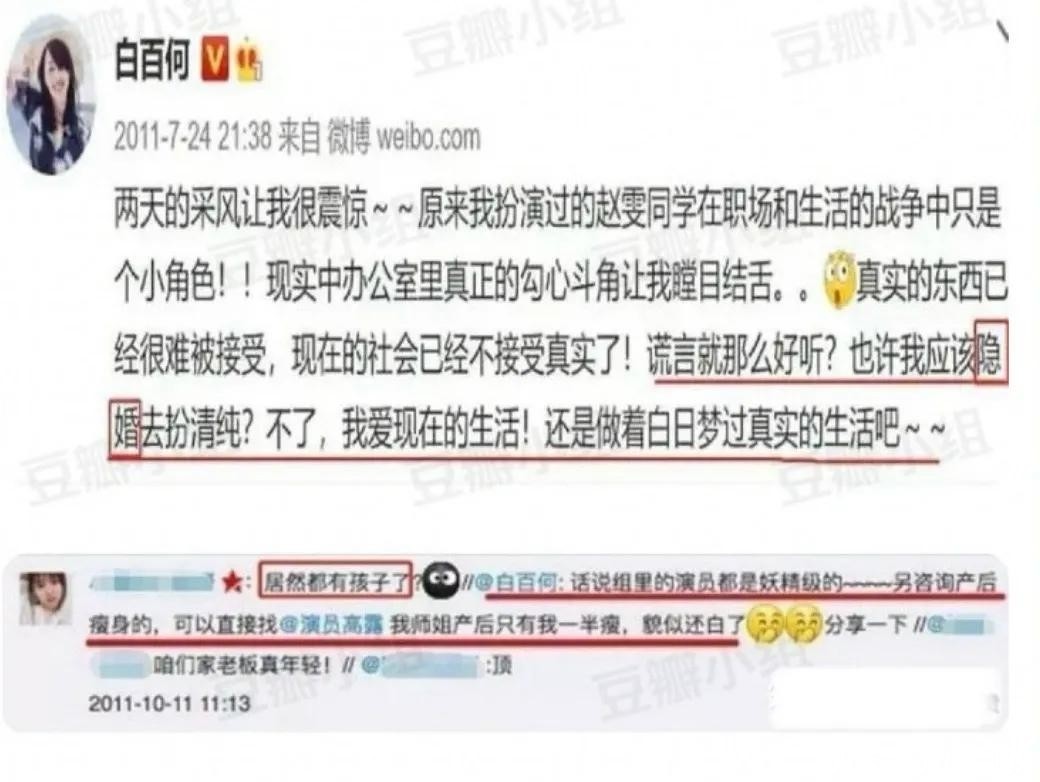 文中提及“隐婚”、“伪装清纯”等关键词,虽未点名,但指向明确,评论区随即有人直接揭发高露曾隐婚生子的事实。